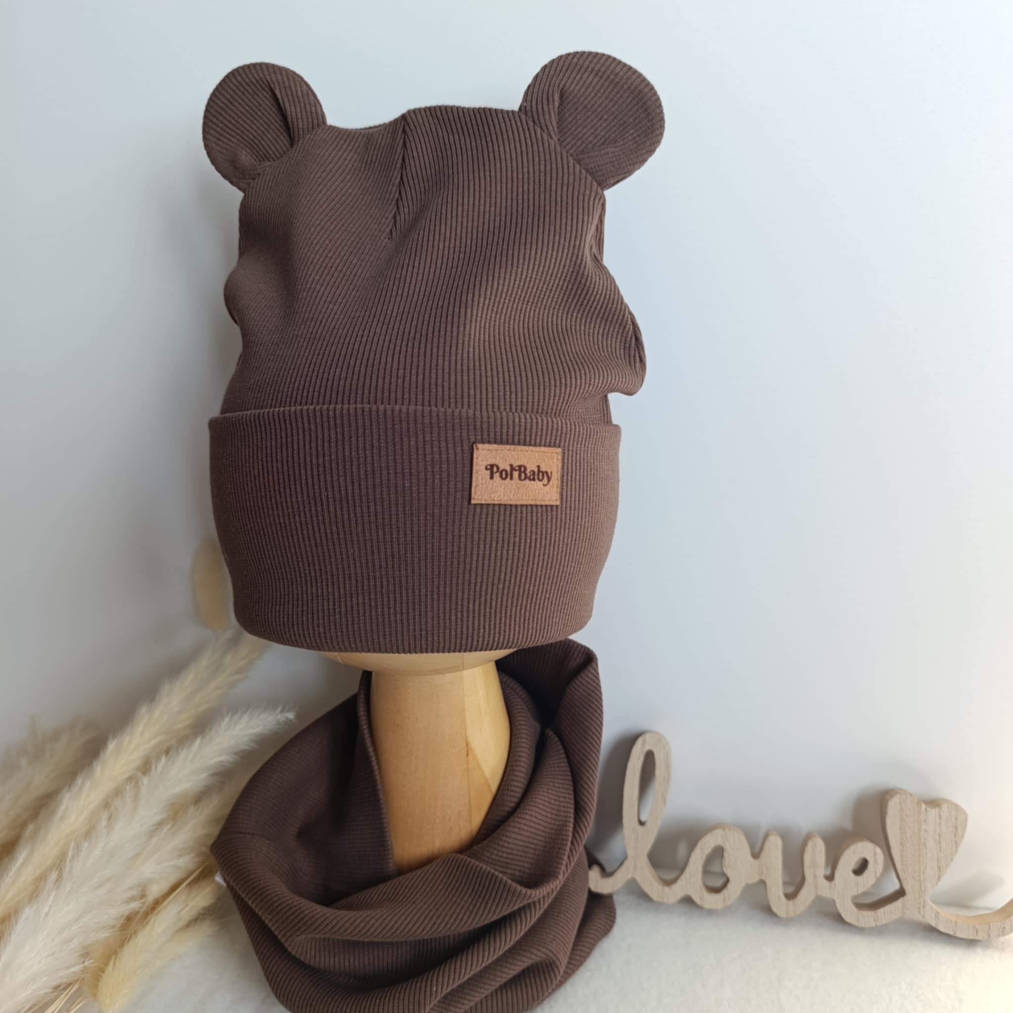 Komplet czapka typu beanie i komin czekolada