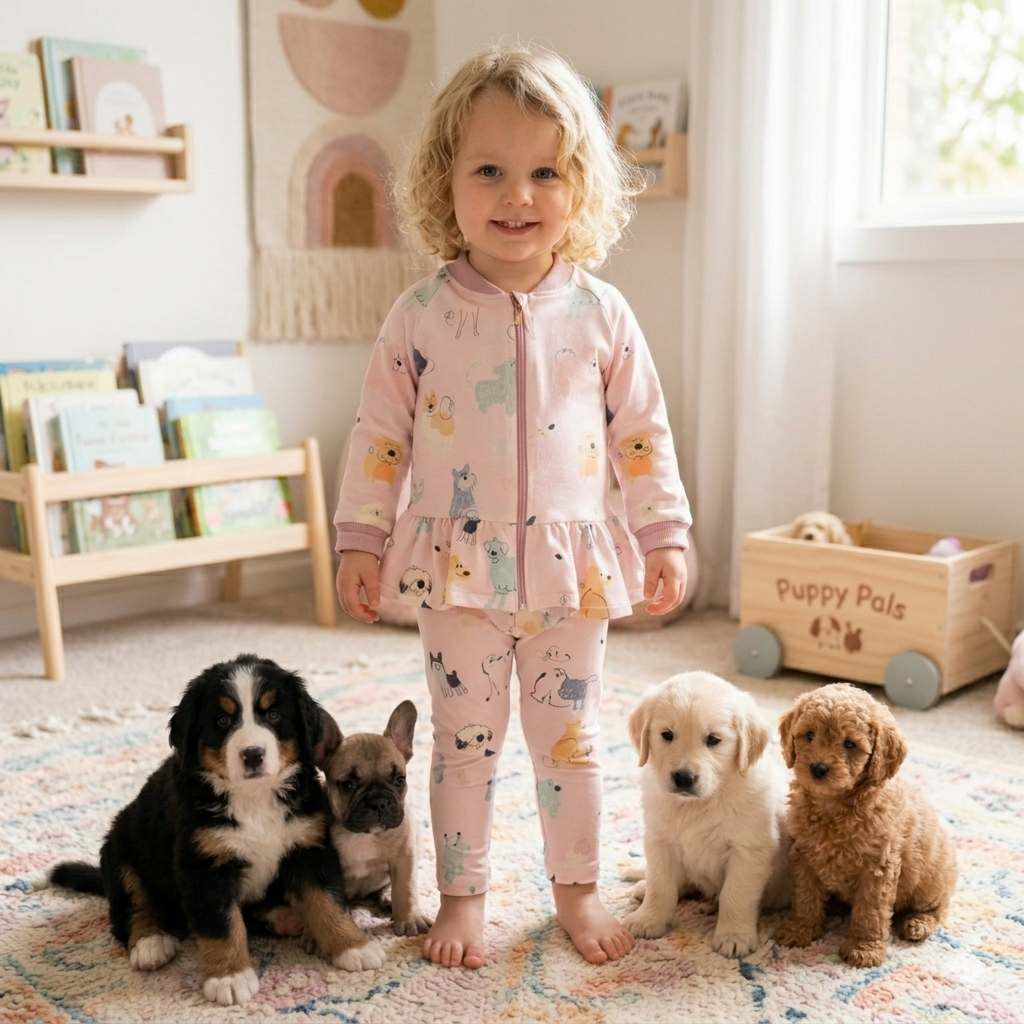 Malowane psy - komplet bawełniany